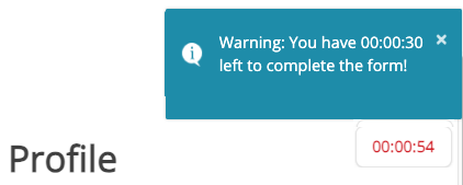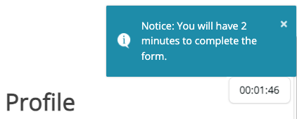 The blue message tells them how long they have to complete the form.